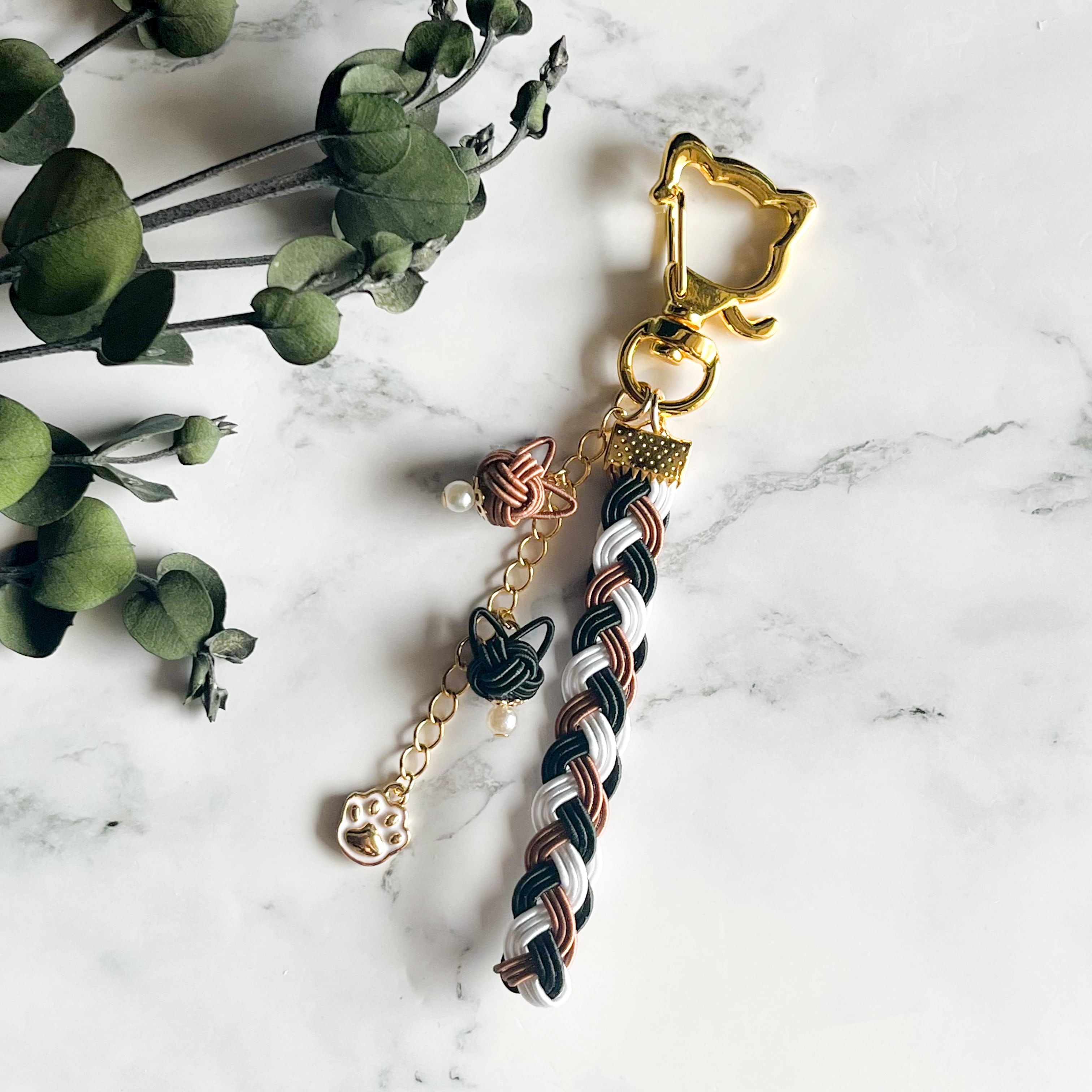 【抽選販売】三毛猫柄の三つ編みキーホルダー