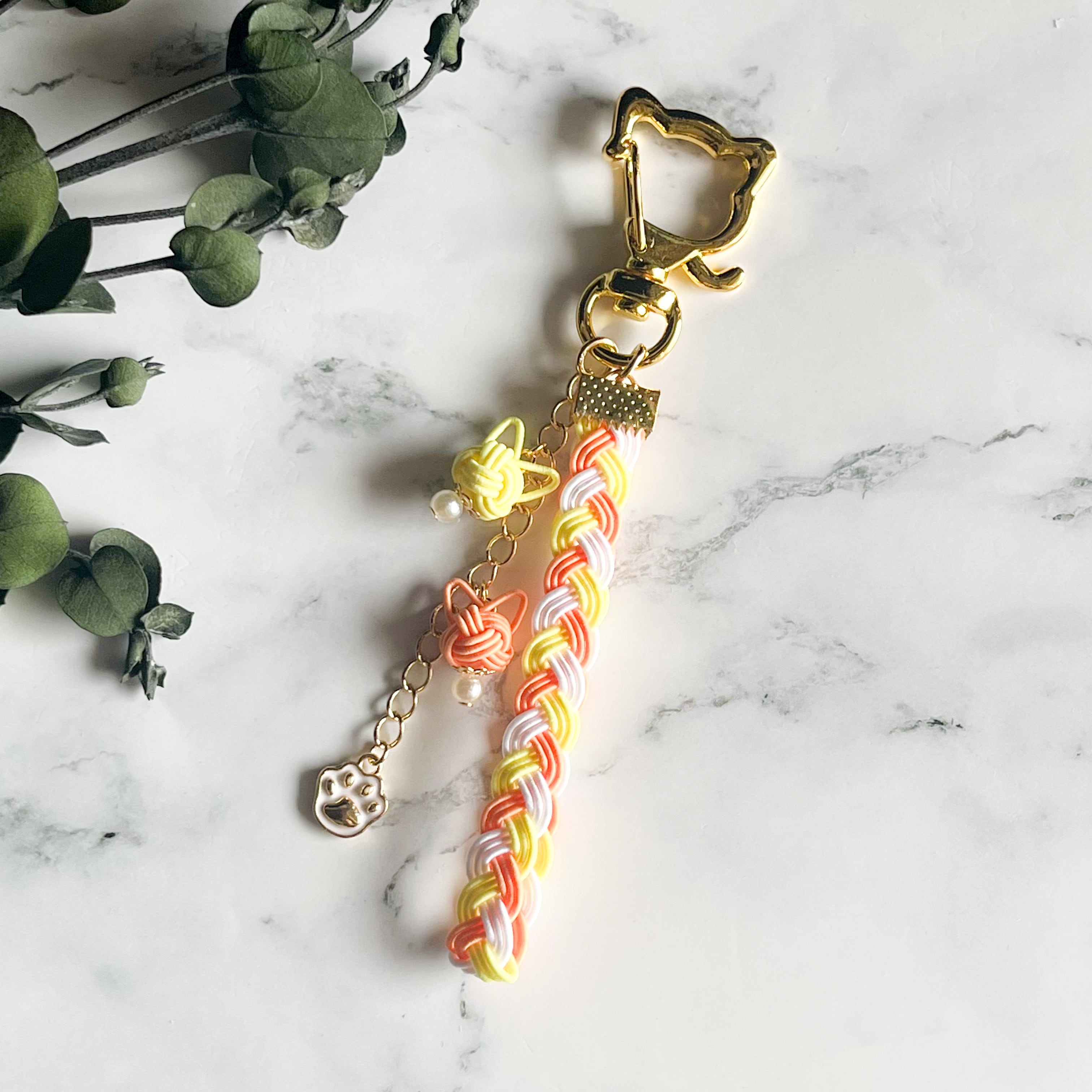【抽選販売】シトラス猫三つ編みキーホルダー(オレンジ×黄色)