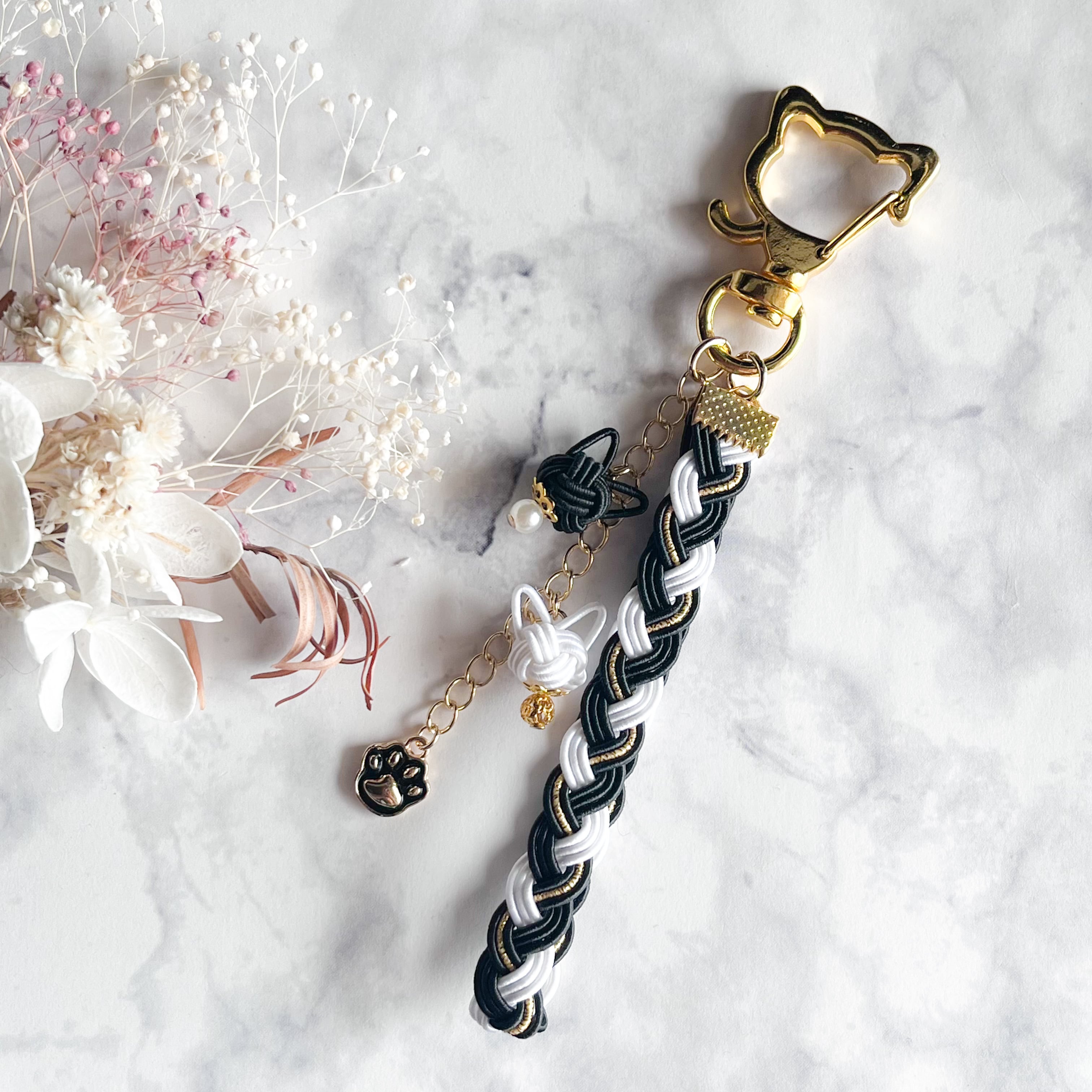 【抽選販売】モノクロ猫三つ編みキーホルダー