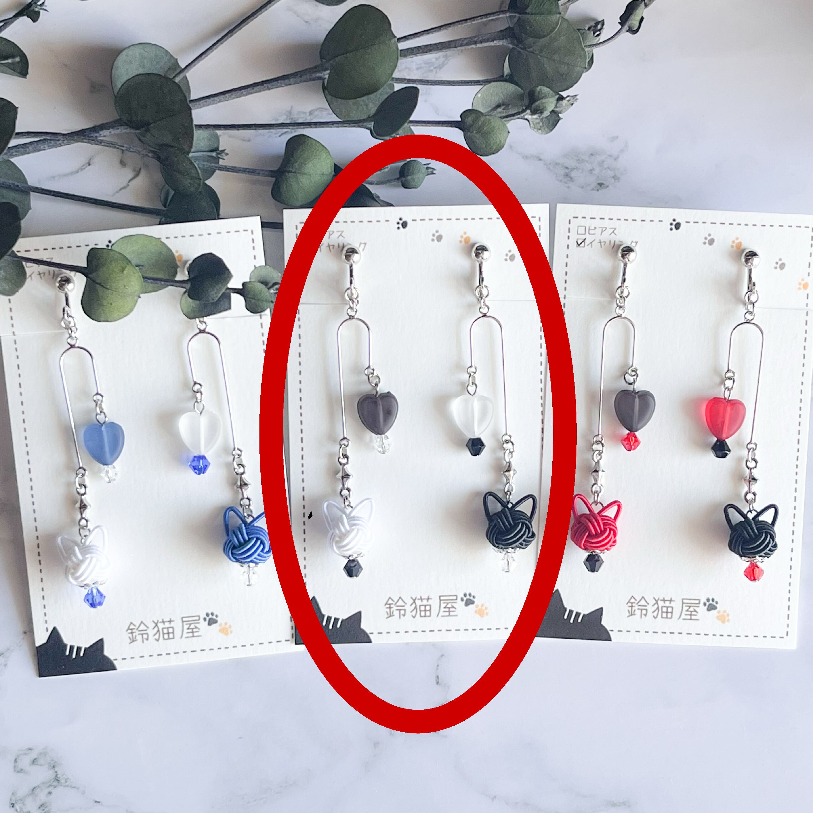 【A-29】シルバーモビール猫ピアス/イヤリング(黒×白)